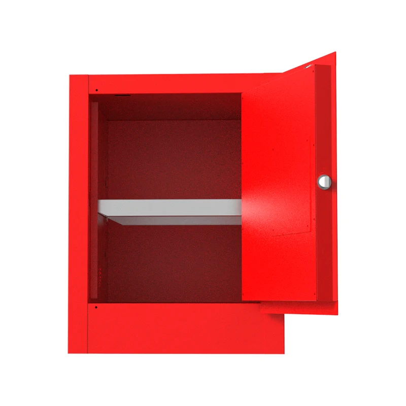 మండే కెమికల్ సేఫ్టీ స్టోరేజ్ క్యాబినెట్ డబుల్-లేయర్ స్టీల్ ప్లేట్ నిర్మాణంతో నిర్మించబడింది, ఇది క్యాబినెట్ బాడీ యొక్క బలం మరియు స్థిరత్వాన్ని బాగా పెంచుతుంది. పారిశ్రామిక ఉత్పత్తిలో, తరచుగా నిర్వహణ మరియు ఘర్షణలను ఎదుర్కొన్నప్పుడు, అది లోపల నిల్వ చేయబడిన మండే రసాయనాలకు నమ్మకమైన భౌతిక రక్షణను అందిస్తుంది, క్యాబినెట్ దెబ్బతినడం వల్ల మండే వస్తువుల లీకేజీ వల్ల కలిగే సంభావ్య ప్రమాదాలను నివారిస్తుంది. రసాయన ముడి పదార్థాల గిడ్డంగులు వంటి ప్రదేశాలకు ఇది అనుకూలంగా ఉంటుంది.